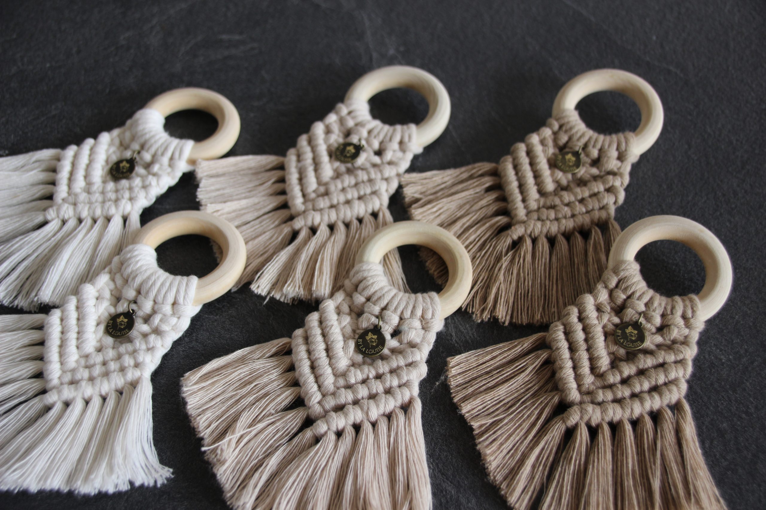 longueur totale (du haut de l’anneau jusqu’au bas du macramé): 14 cm