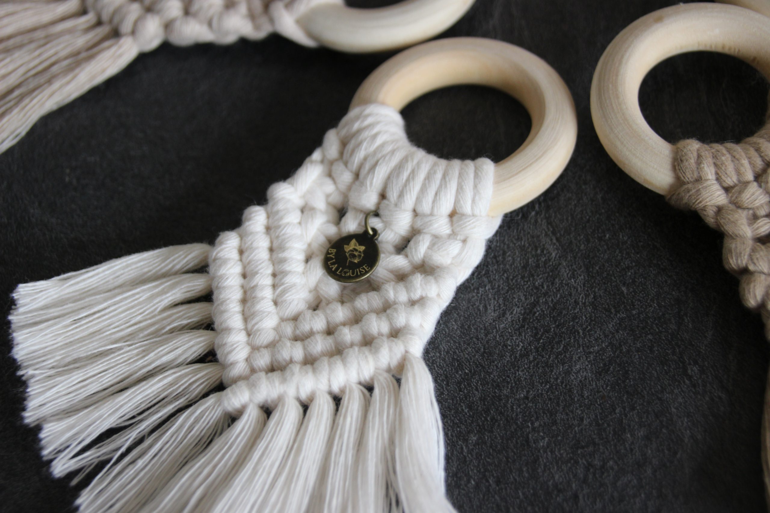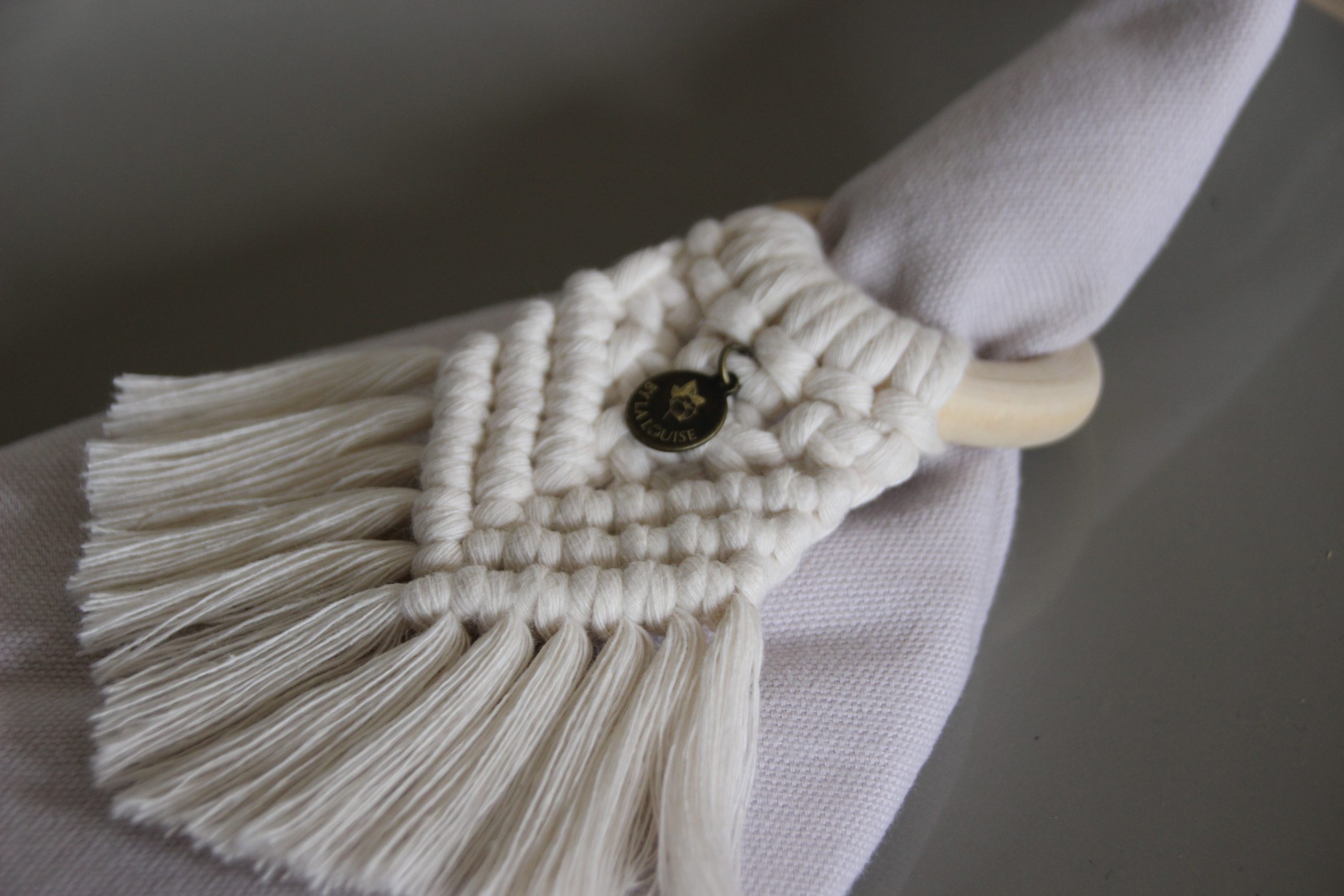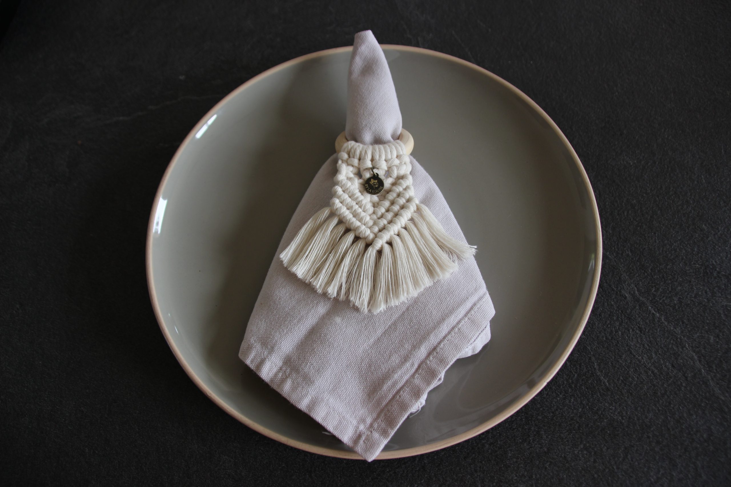 lot de deux ronds de serviette en bois et coton recyclé certifié Oeko-tex, entièrement réalisé par mes soins en macramé.