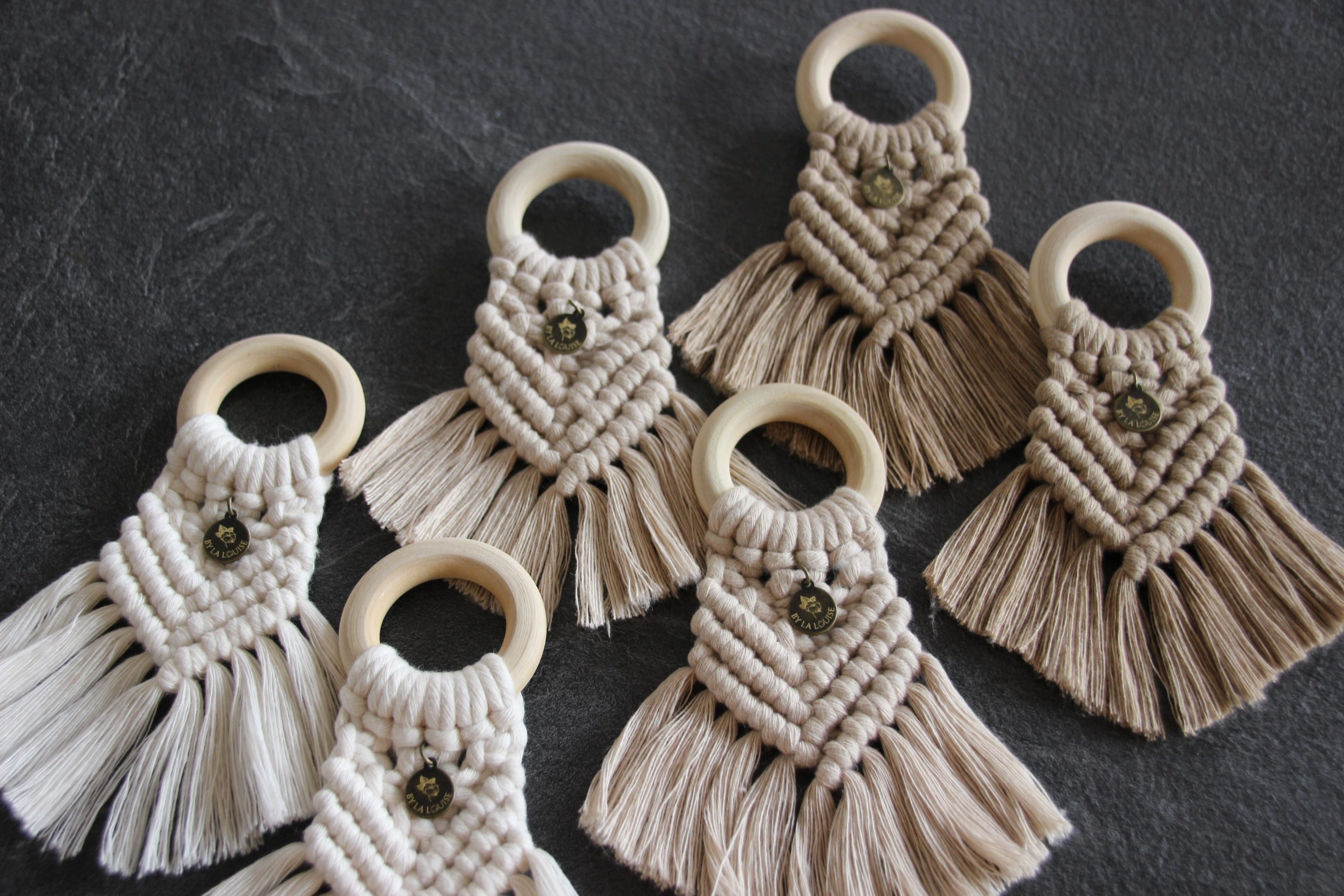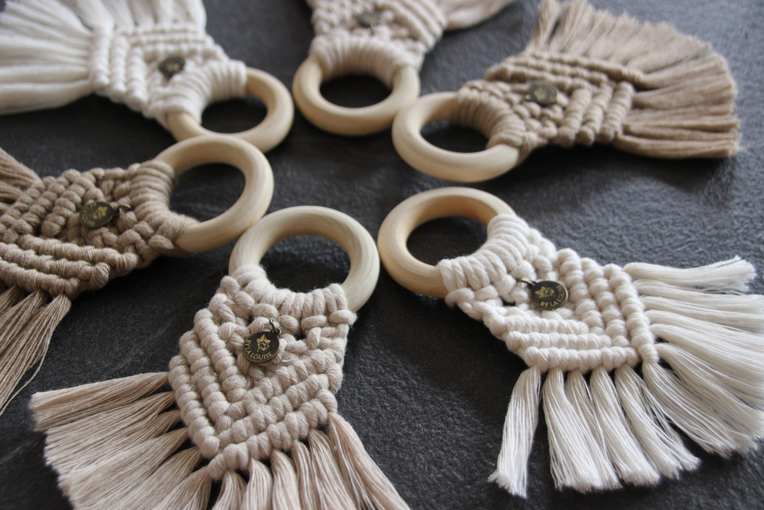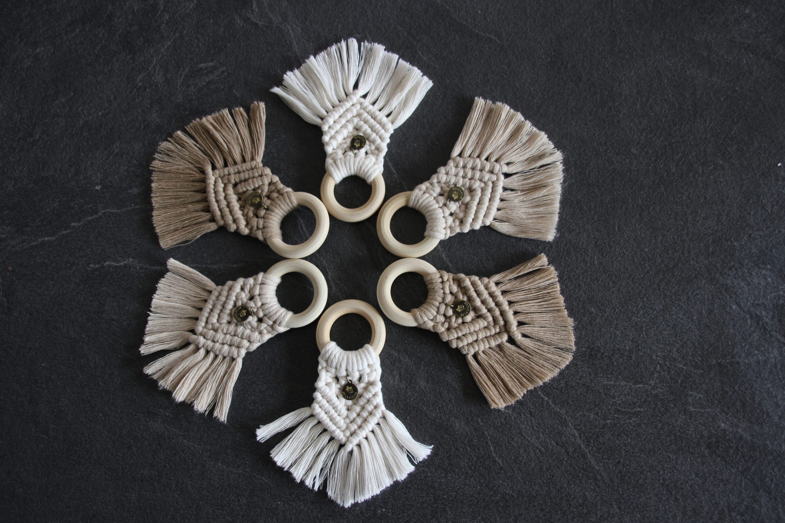 lot de deux ronds de serviette en bois et coton recyclé certifié Oeko-tex, entièrement réalisé par mes soins en macramé.