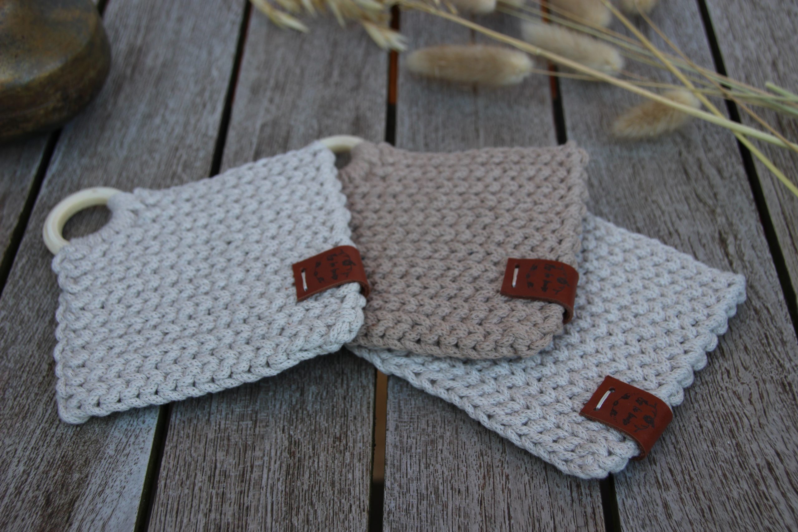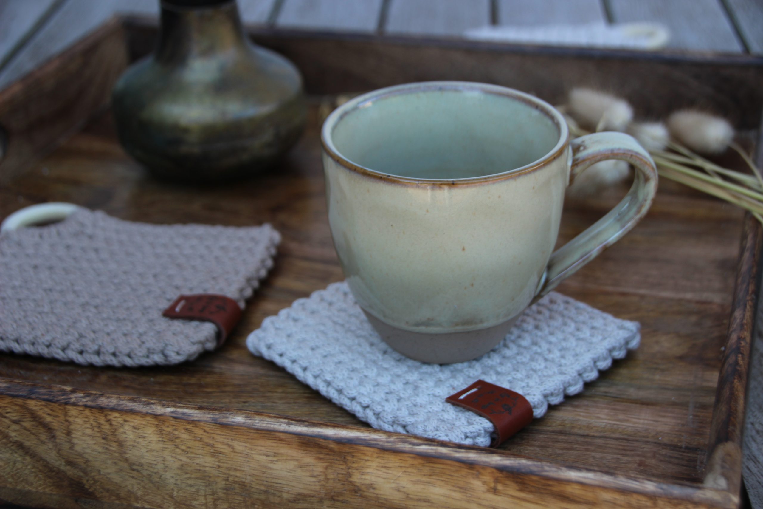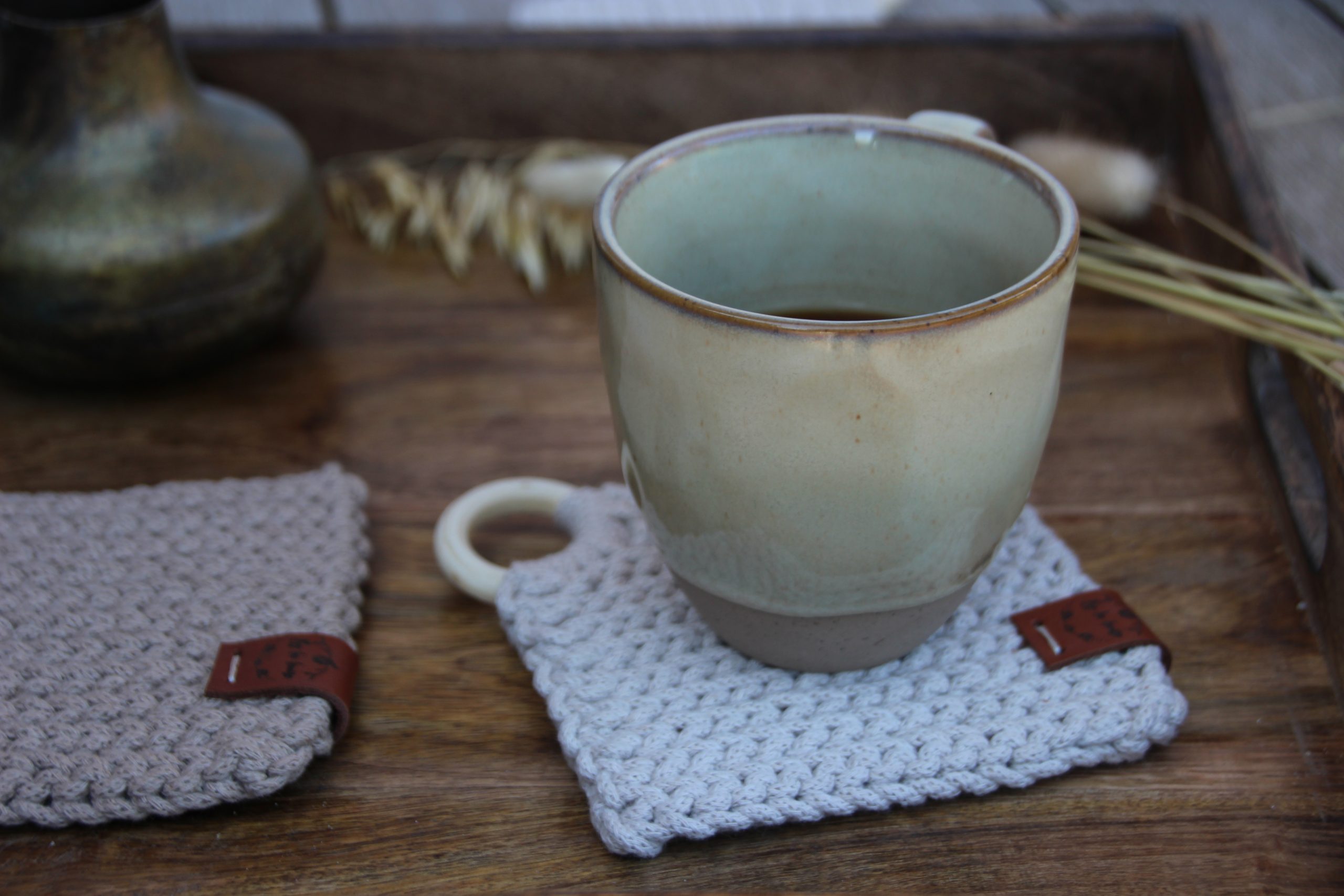 Lot de deux sous-tasses, en coton recyclé certifié OEKO-TEX, entièrement crocheté par mes soins.