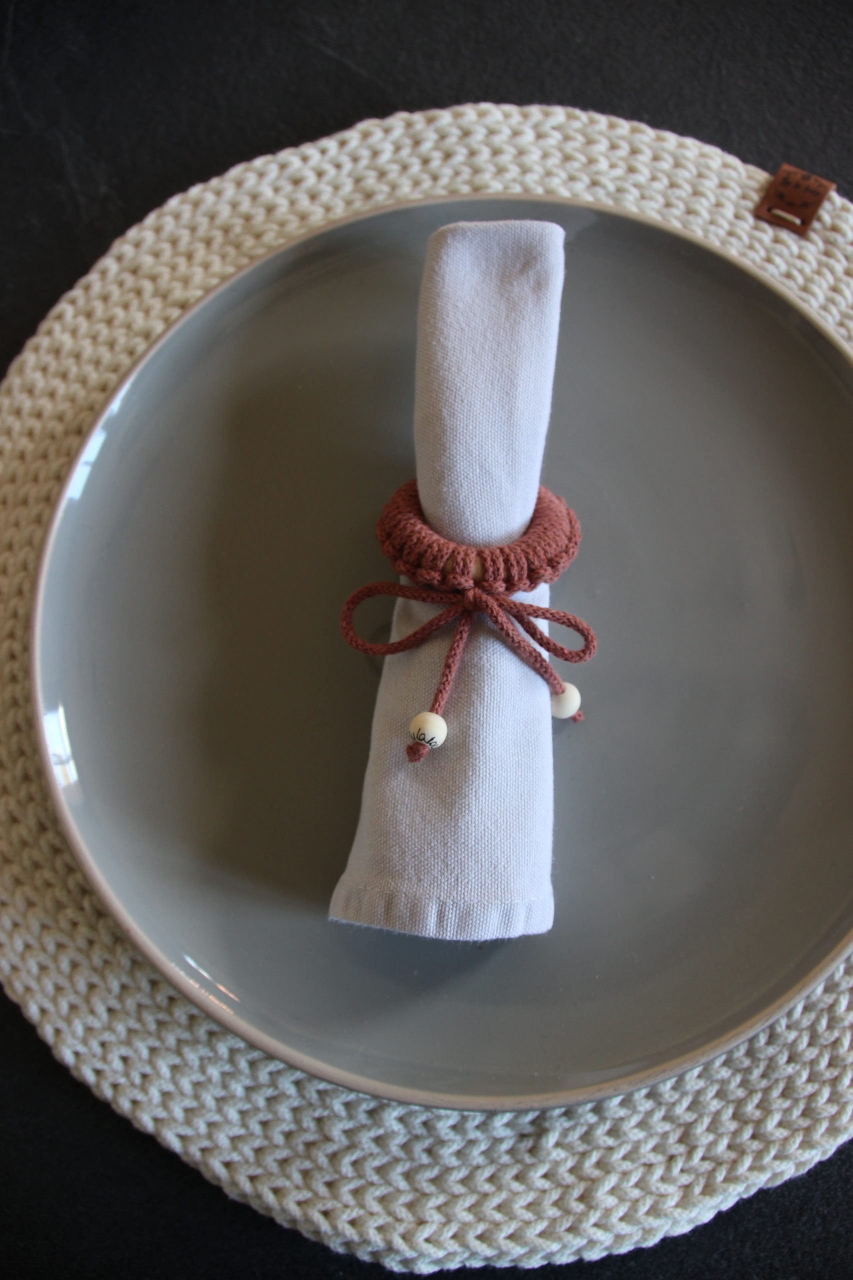 Donnez une touche chaleureuse et élégante à votre table de Noël avec nos ronds de serviettes colorés en macramé.
