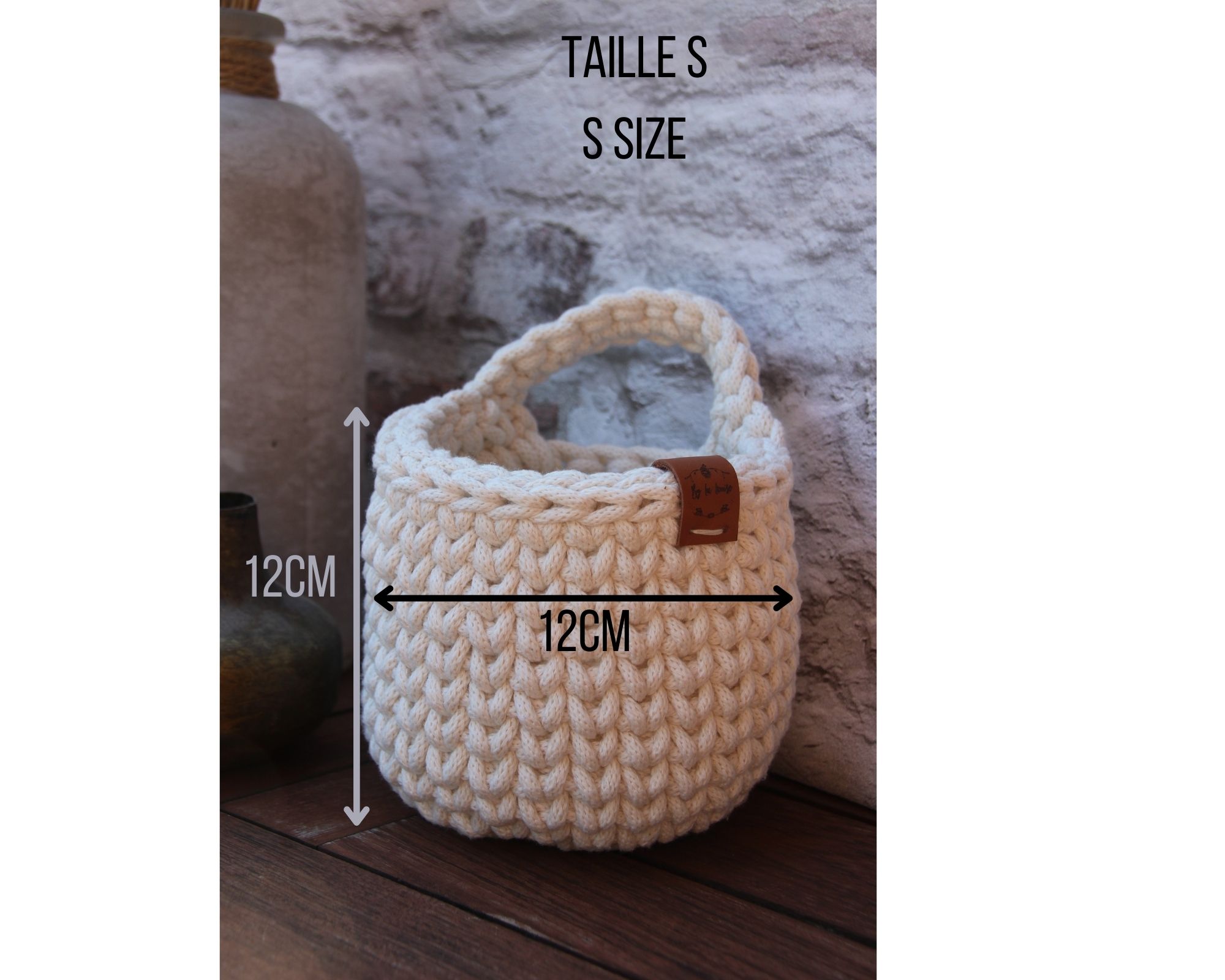 ce modèle de panier est disponible en trois tailles, il s’agit ici de la plus petite (taille S).