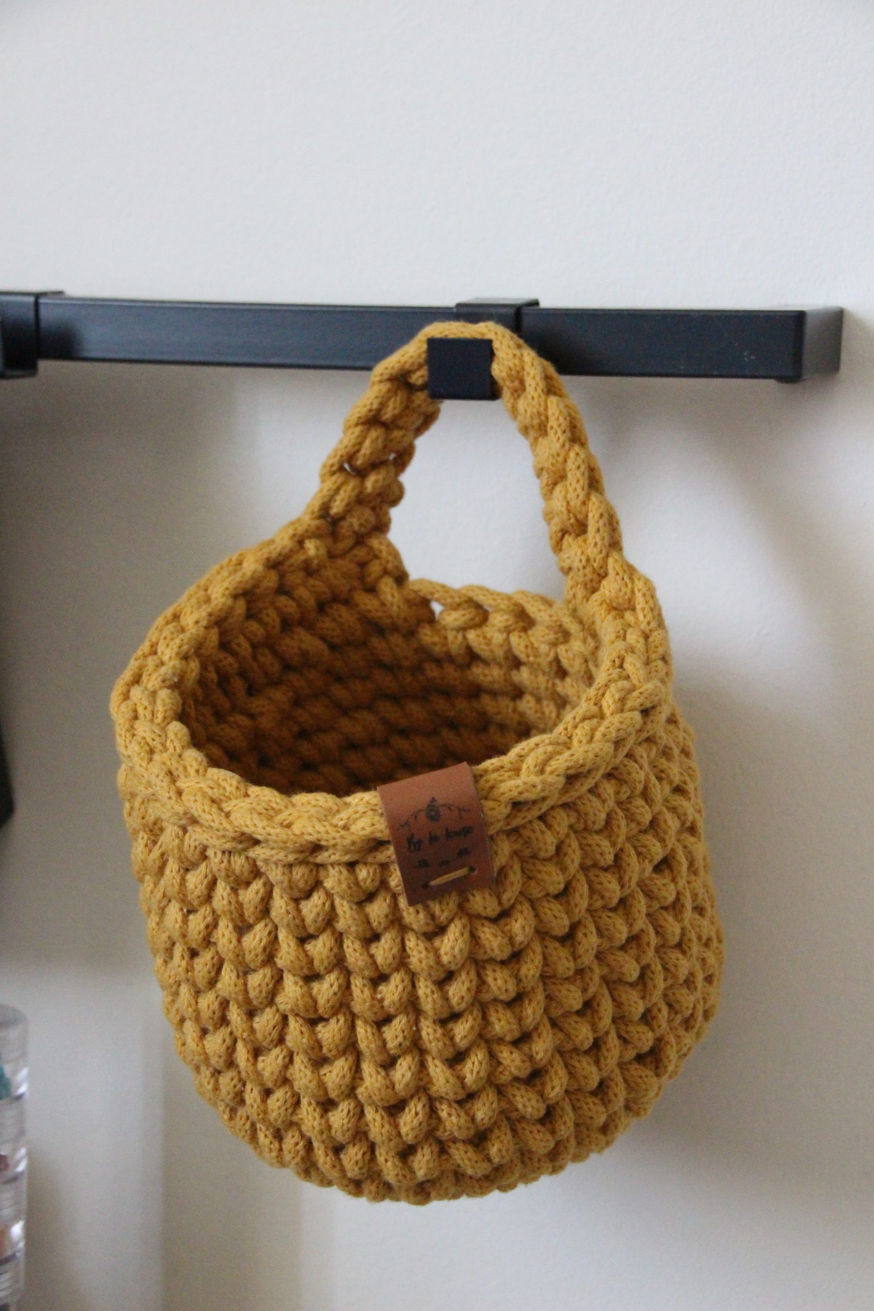 Petit panier à suspendre, en coton recyclé certifié OEKO-TEX, entièrement crocheté par mes soins.