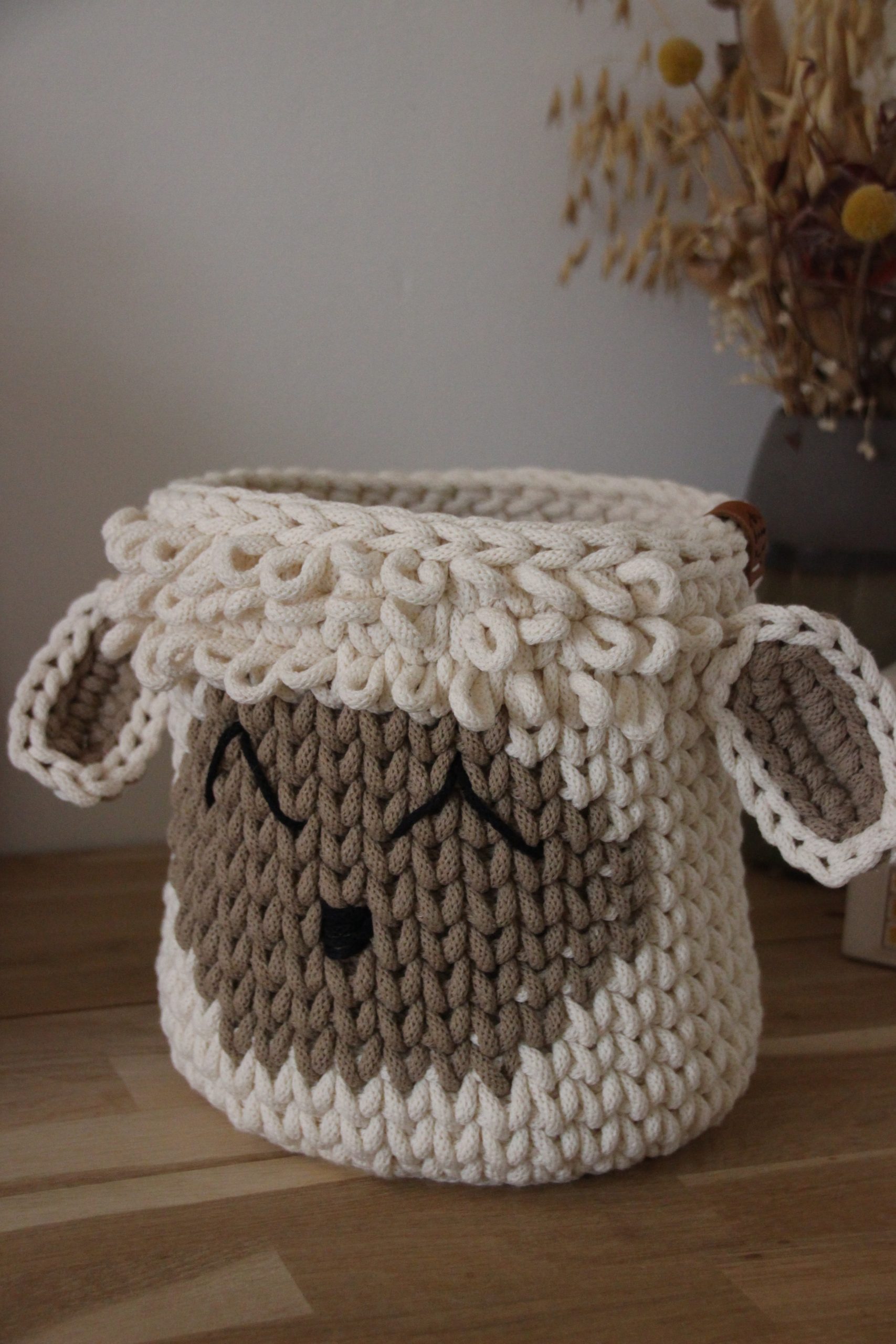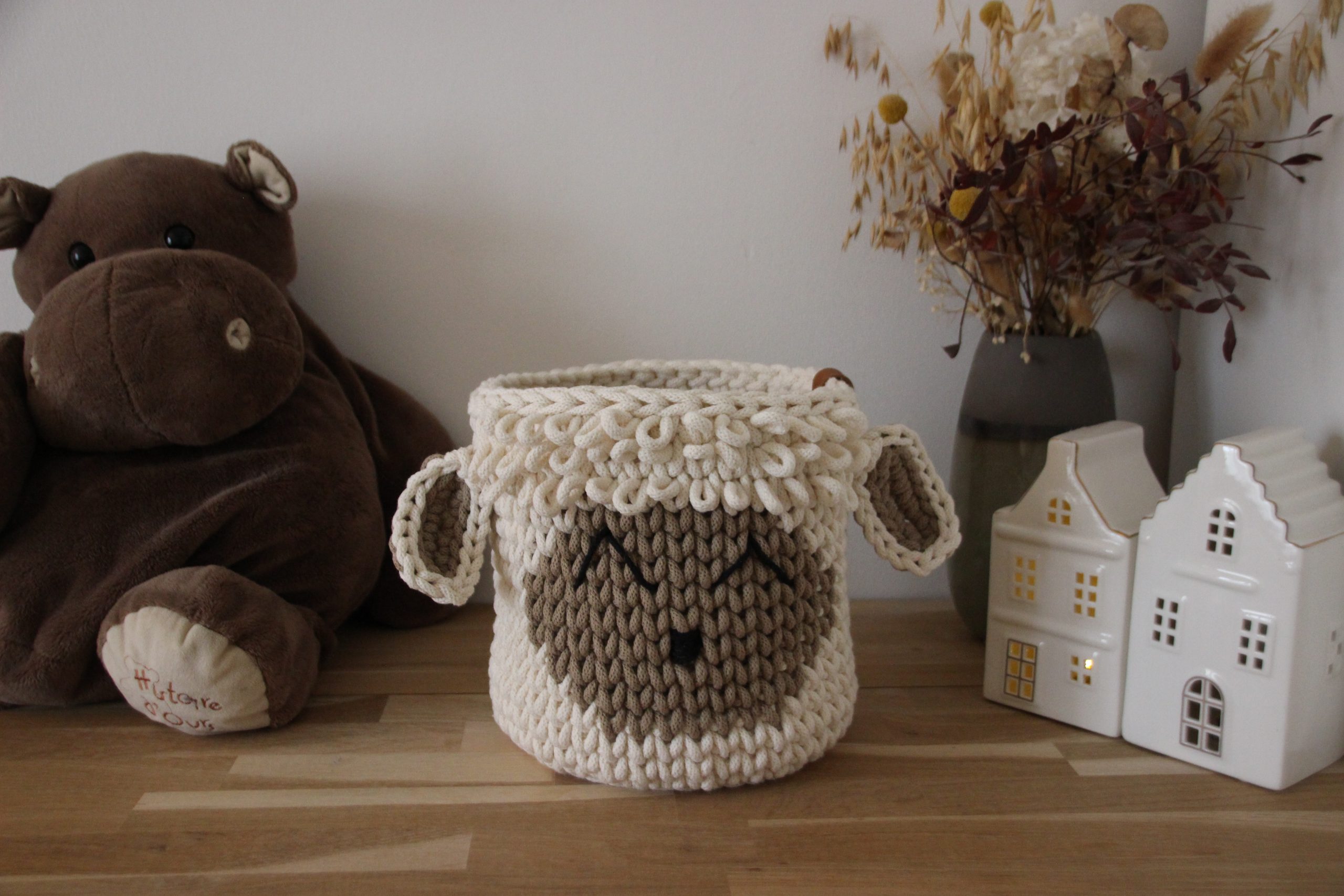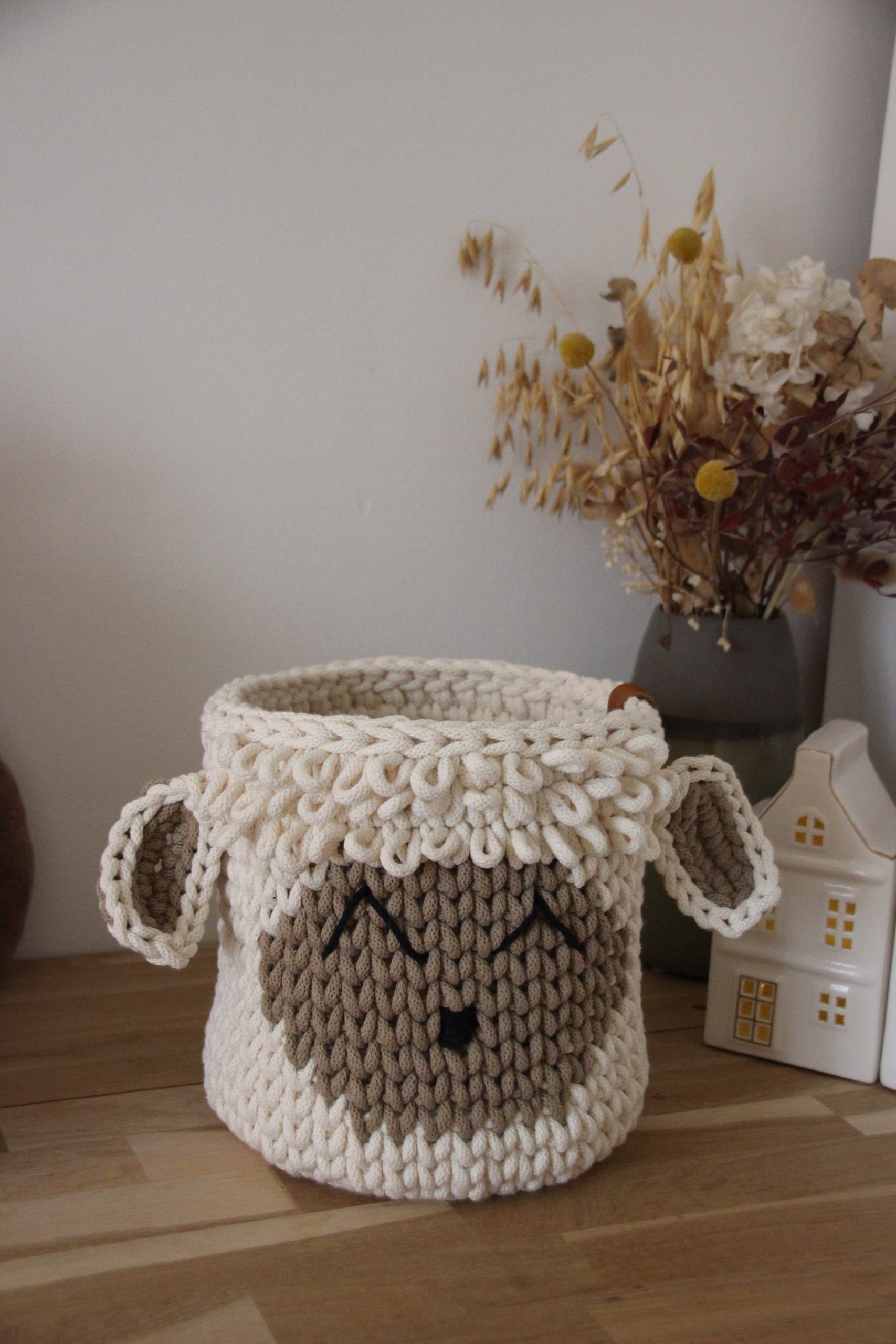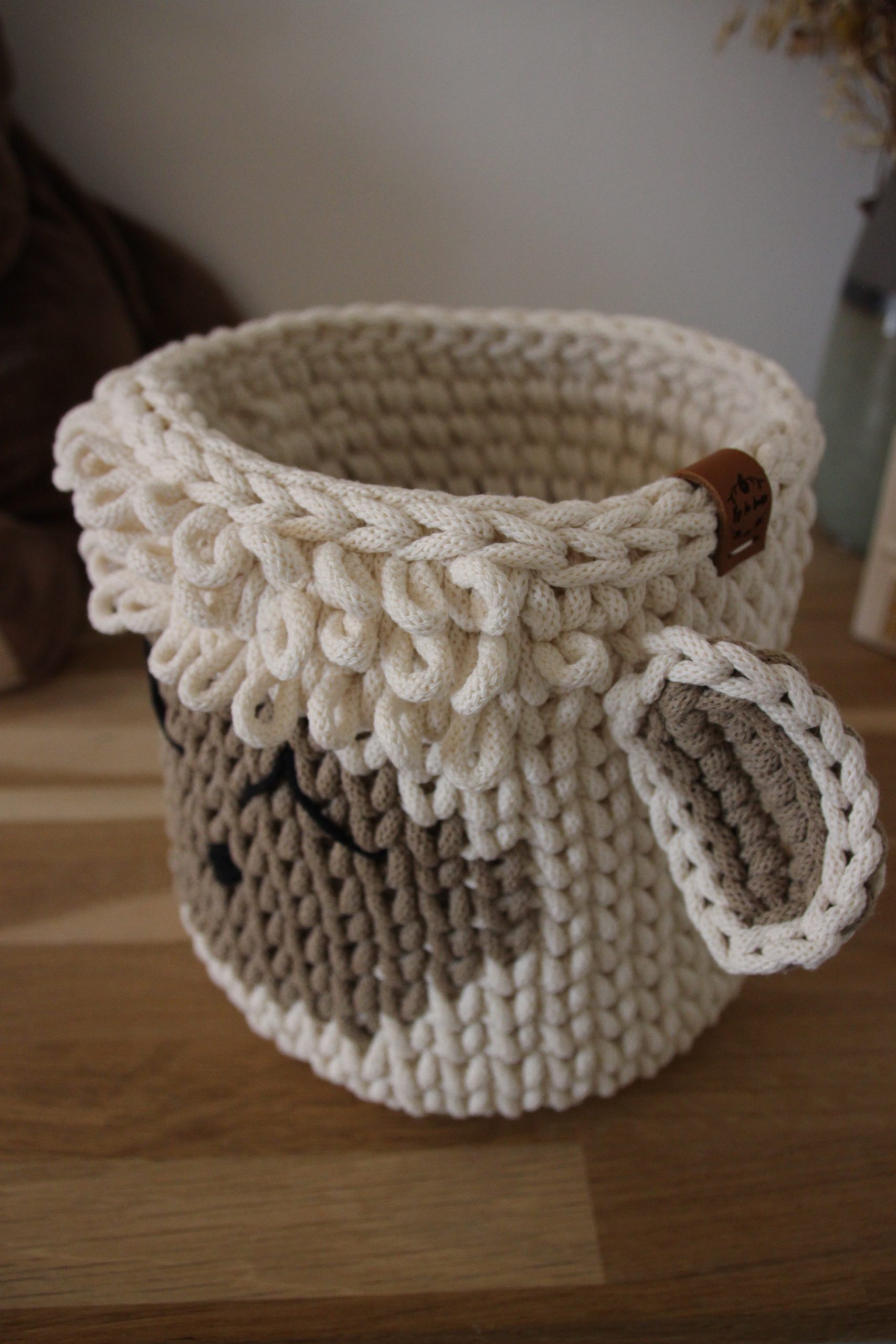 Panier mouton au crochet en coton recyclé, fabriqué à la main en France dans mon atelier By La Louise.
