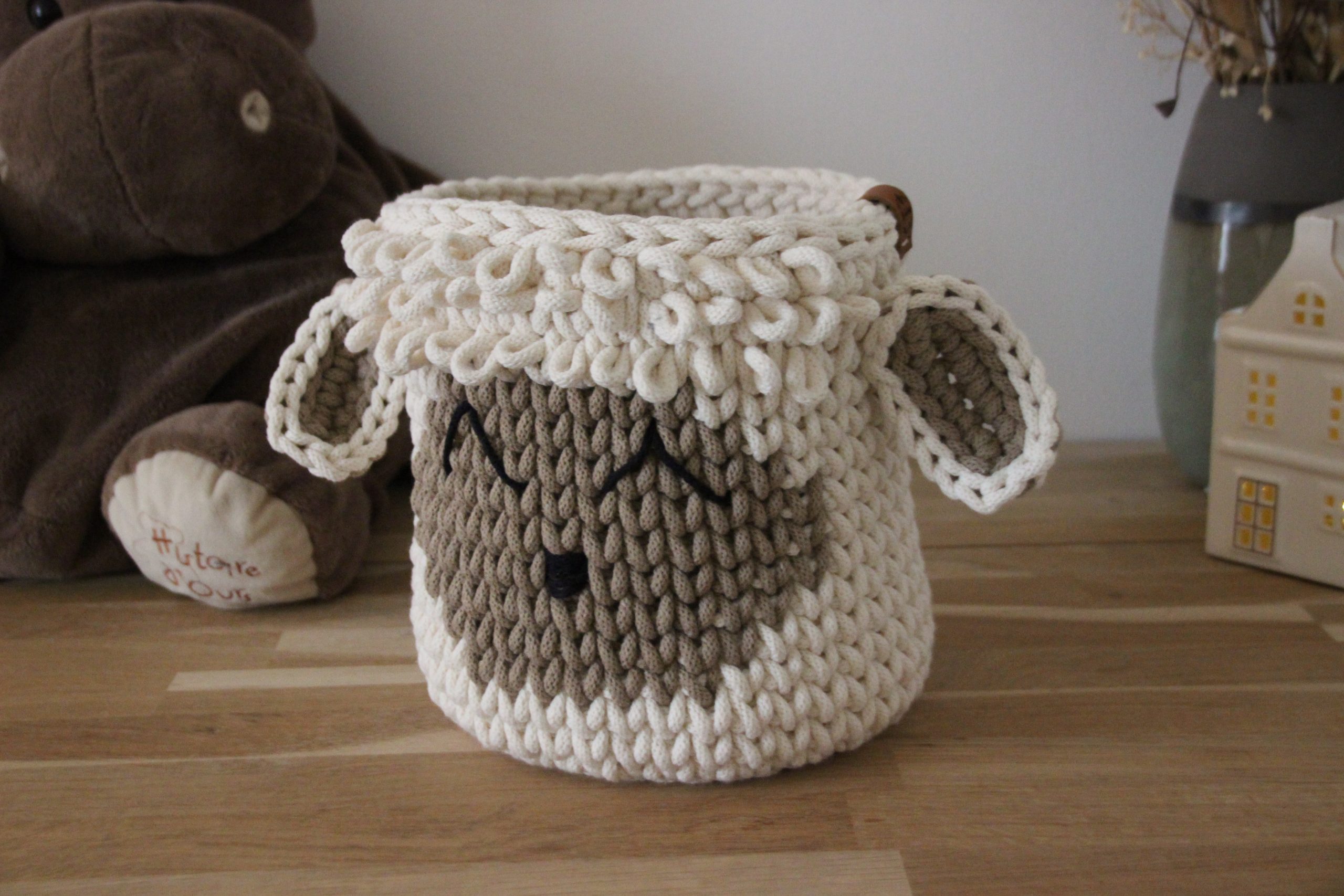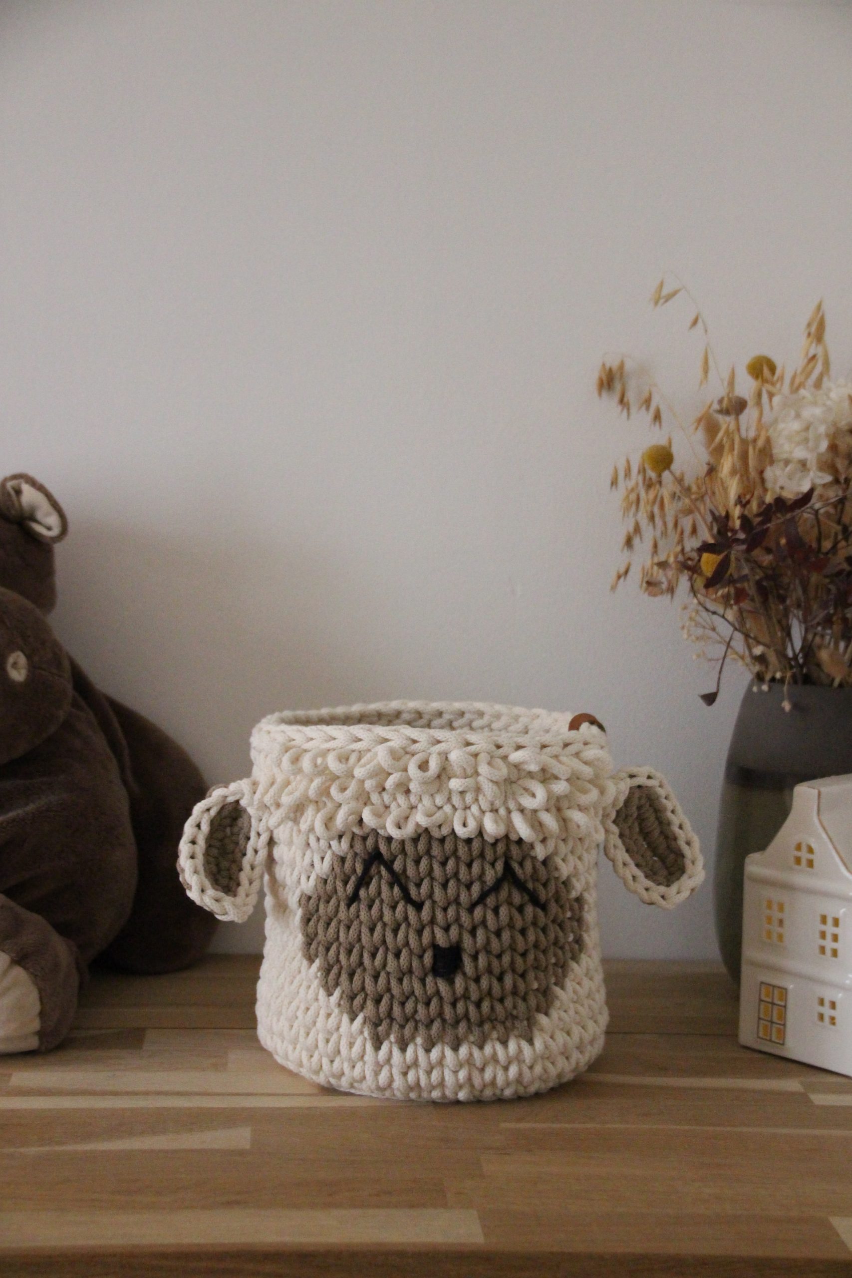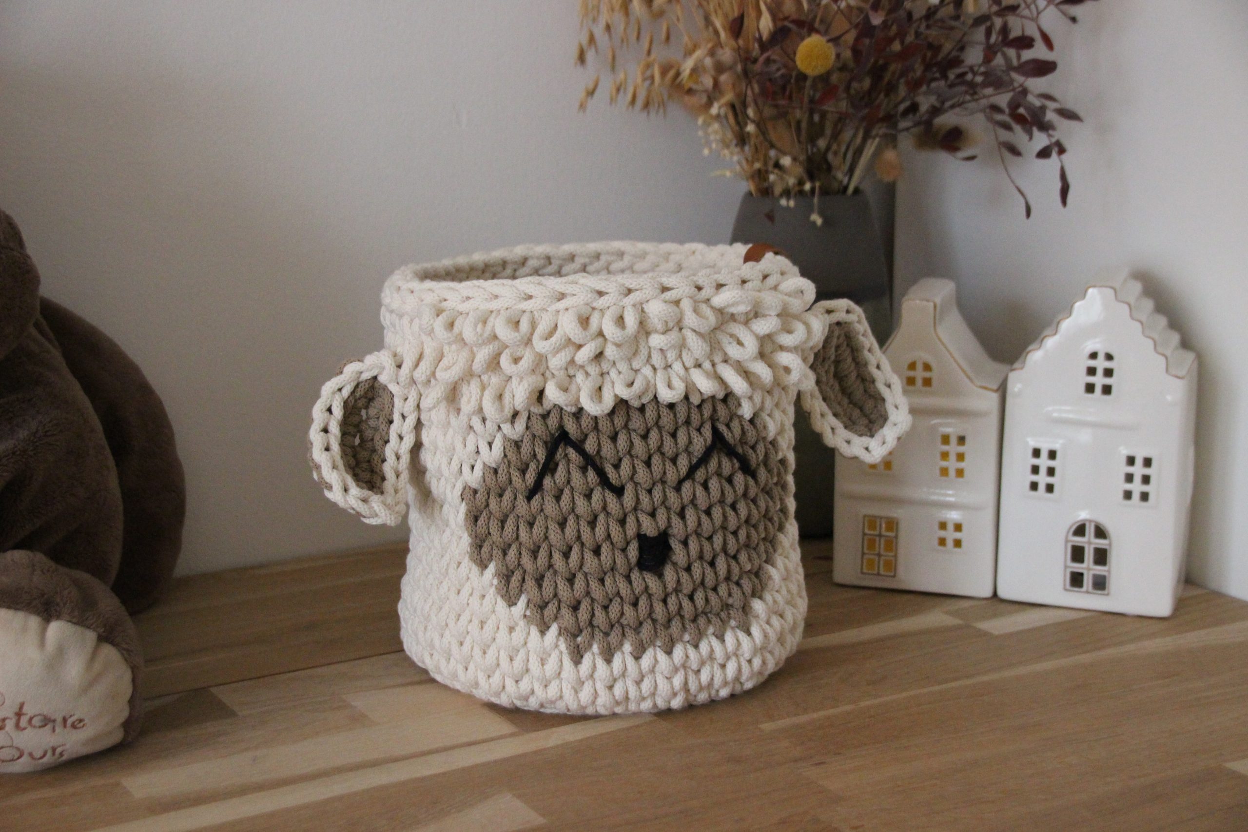 Panier mouton au crochet en coton recyclé, fabriqué à la main en France dans mon atelier By La Louise.