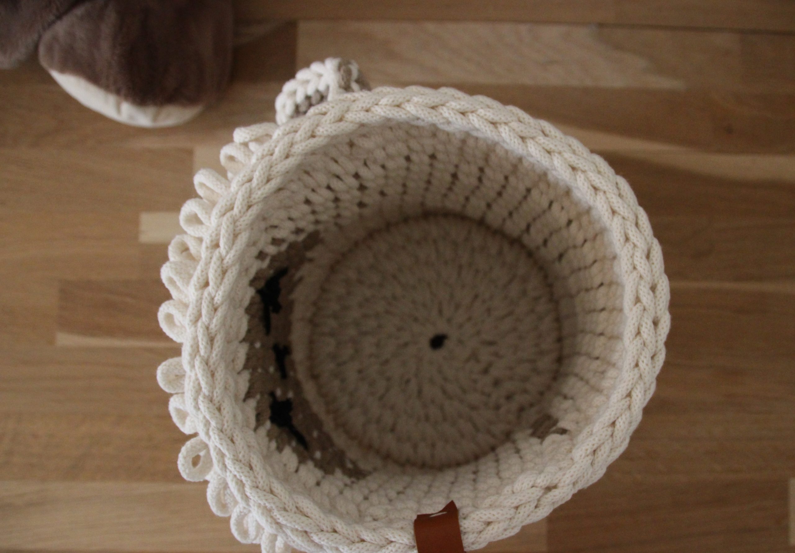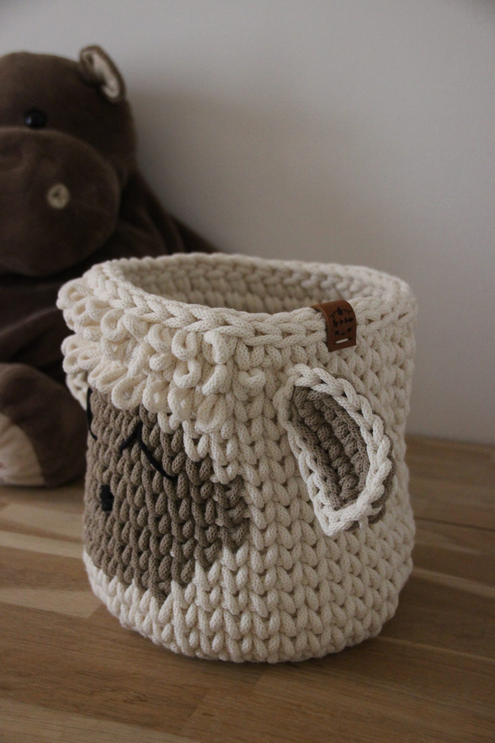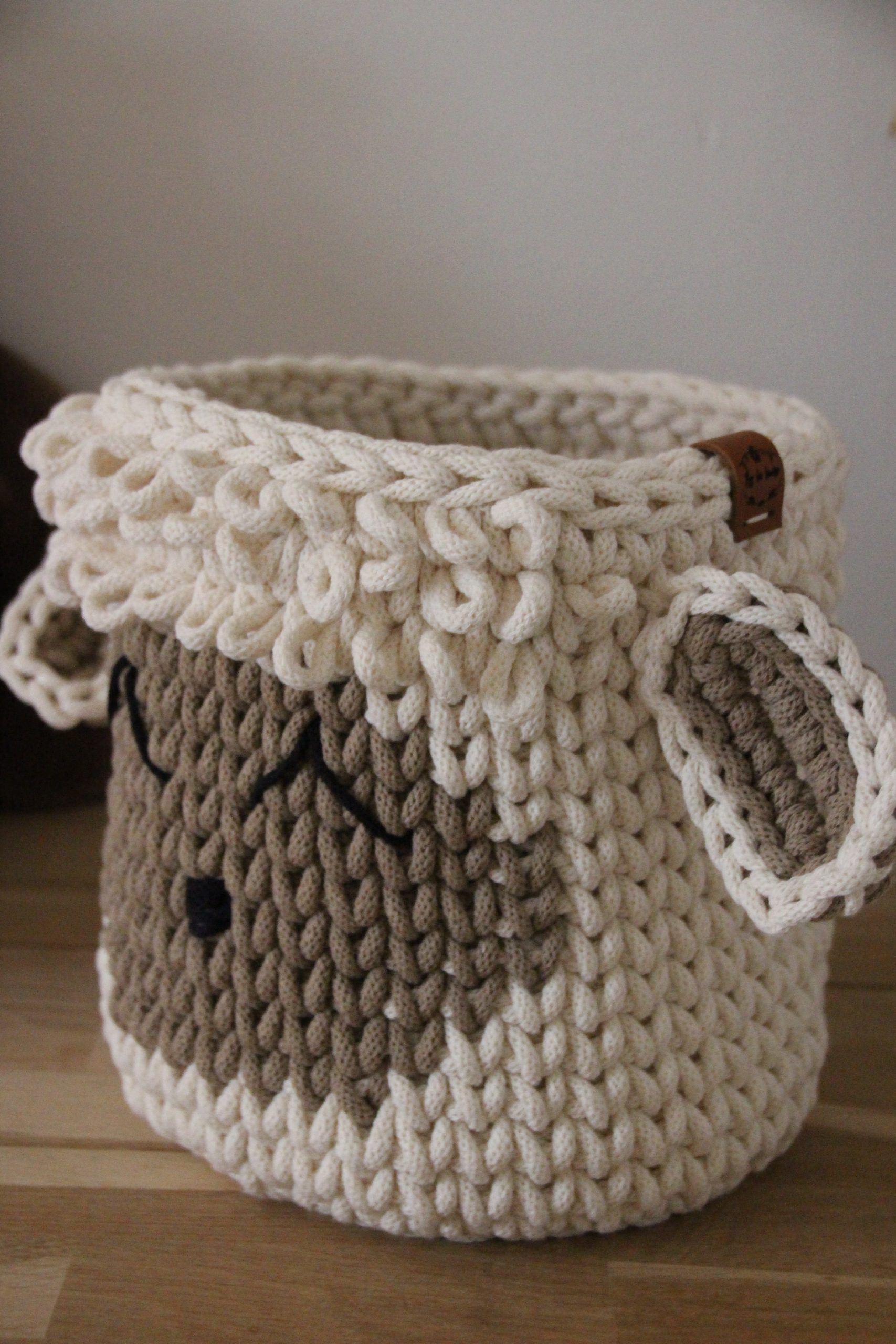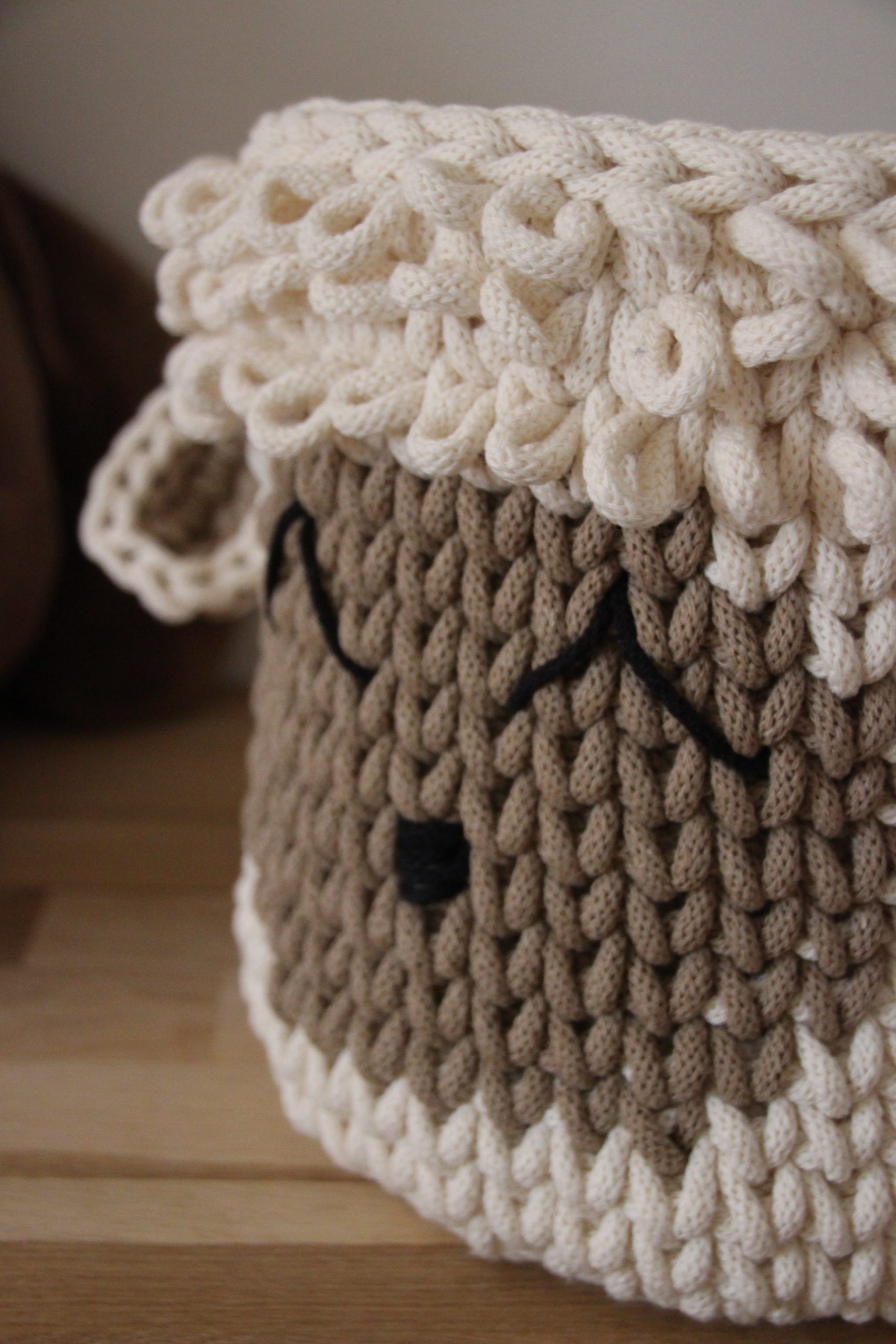 Panier mouton au crochet en coton recyclé, fabriqué à la main en France dans mon atelier By La Louise.