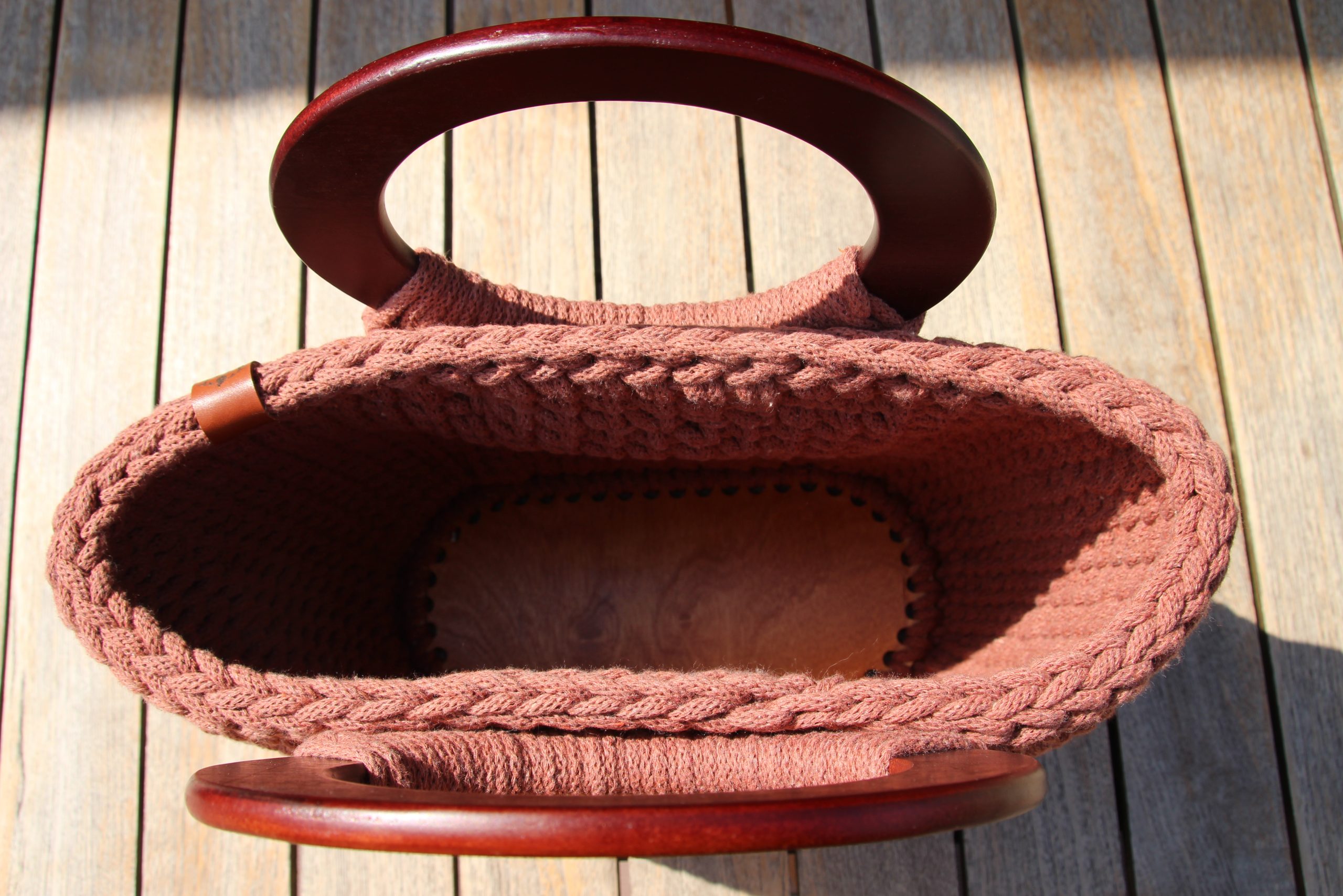 Le panier MANON est un petit panier à fond rigide en bois, muni de jolies anses en bois couleur Acajou.